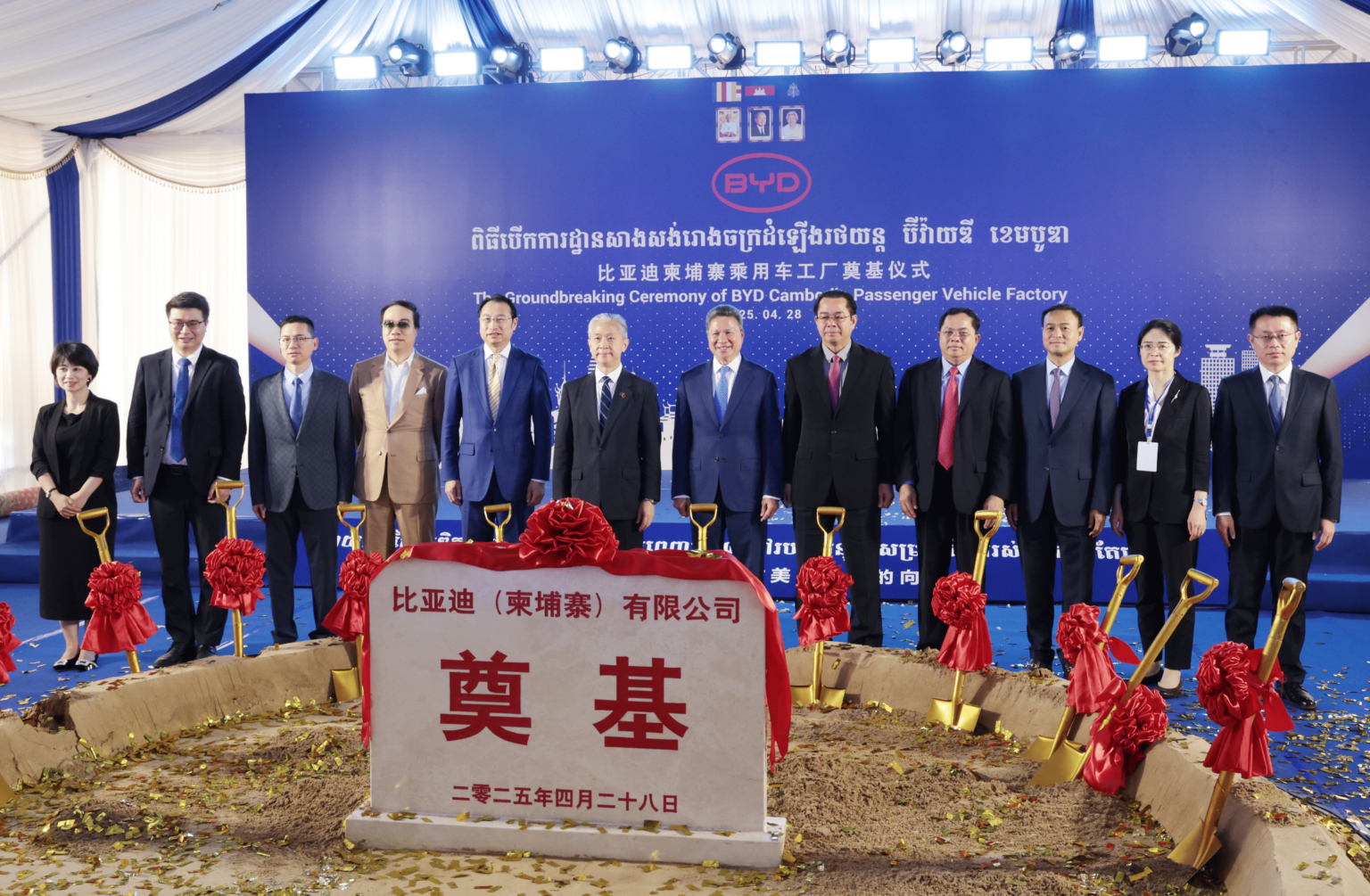 于2025年4月正式奠基的比亚迪(柬埔寨)有限公司主要生产新能源汽车,工厂总占地面积12万平米,年产能1万台,计划于今年年底前正式投入使用。建成后,不仅将为西哈努克港经济特区的高质量发展增添亮色,更能带动柬埔寨汽车制造业发展,助力柬埔寨推动绿色低碳经济转型。