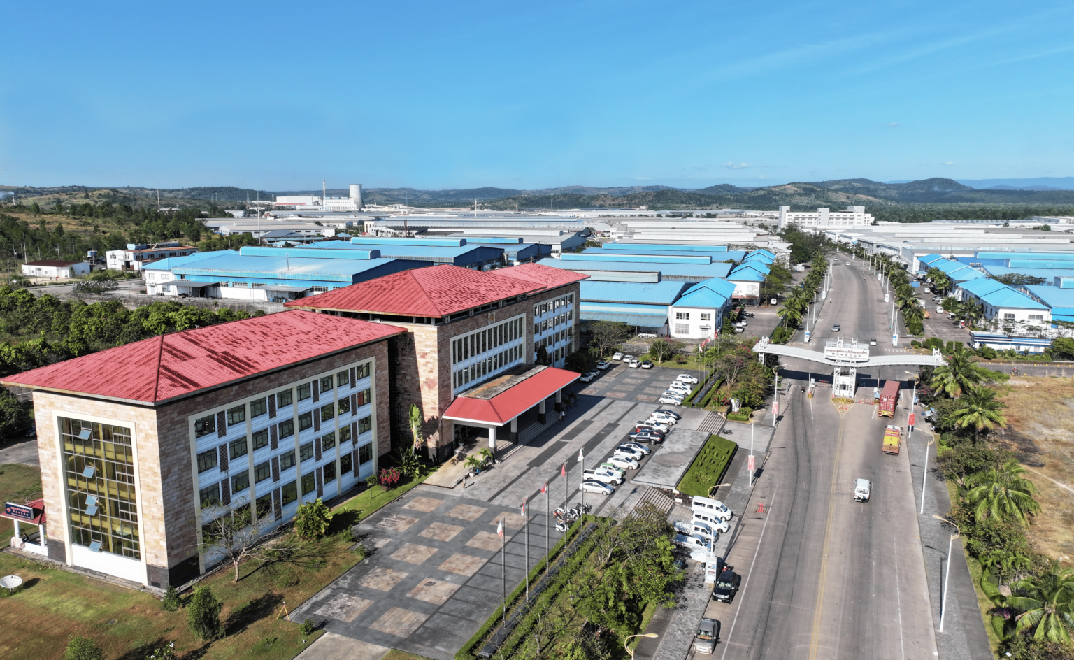 西哈努克港经济特区临近西哈努克国际港、西哈努克国际机场以及金港高速公路,交通便捷畅行。很难想象,十多年前,这里还是一片高低落差达70多米,遍布沟壑和丘陵的莽原荒滩,无水、无电、无路、无网。为尽快满足企业入驻生产的条件,西哈努克港经济特区以“平台+”理念,不断优化基础配套设施及国际服务体系,提升产业承接能力。